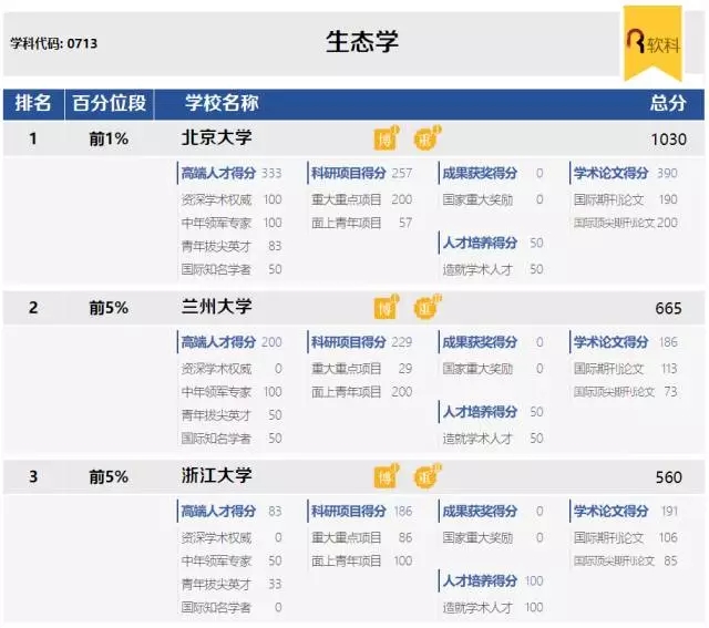 不同学科的学科点基数不同,因此竞争的激烈程度也不一样。有的热门学科如计算机科学与技术、工商管理等,参加排名的高校在300个左右,而像特种医学、大气科学这样的小众学科,设置的高校数都不超过20个。为此,中国最好学科排名引入了百分位段的概念,在绝对数排名以外还给出了每个学科点在本学科所处的相对位置。