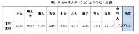相对而言,C10的本科生数差异没有国外悬殊。大于均值的3个学校本科生数都大于23000人,中山大学32660人、哈尔滨工业大学26712人、浙江大学23897人;10所大学中仅排名最末位的是中国科学技术大学,其数值为7398。