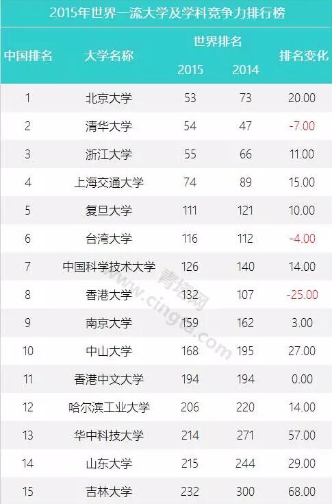 在武大版今年的大学排行榜中,进入2015年世界各国或地区科研竞争力排行榜前10名的国家或地区分别是:美国、中国内地、英国、法国、德国、日本、加拿大、意大利、澳大利亚、韩国。与2014年评价结果相比,美国依然以超强实力雄踞第一;中国内地排名再提升1位,赶超英国,排在第2位。