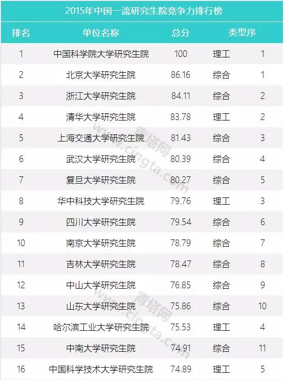 另外,武汉大学中国科学评价研究中心、中国教育质量评价中心联合中国科教评价网还在今年更早的时候发布了中国研究生院排行榜,对中国内地的580个研究生培养单位的竞争力进行了全面、系统和深入的评价,具体排名如下:
